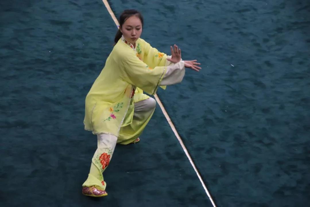 2014级本科生田青青在本次比赛中获得女子传统双器械冠军,女子吴式太极拳冠军,女子陈氏太极拳第五名。
