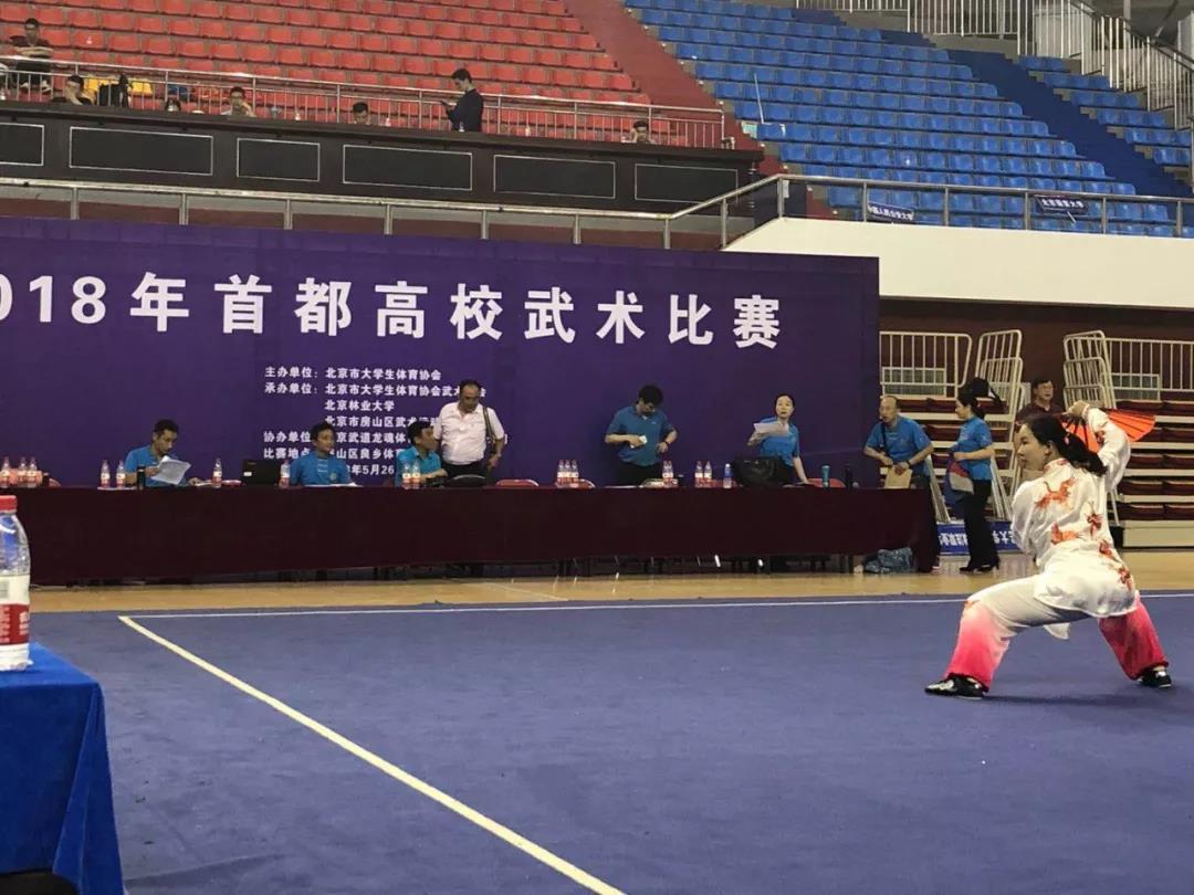2018年5月26-27日,2018年首都高校武术比赛在房山区良乡体育中心成功举行圆满闭幕,本次比赛为首都高校中外学生提供了一个交流学习、切磋技艺、增进友谊的平台,是首都高校武术爱好者的一次盛会。来自首都37所高校的445名中外大学生参加了比赛。北京理工大学武术队在校领导的大力支持和体育部张月霜老师的精心指导下,取得男子团体第二名、女子团体第二名、男女团体总分第二名,金牌17枚,银牌9枚,铜牌3枚的好成绩。