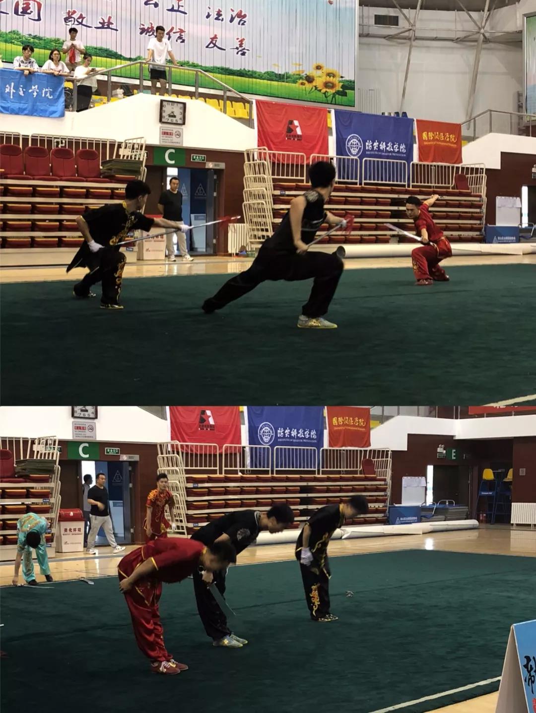 2013级本科生吴冠廷即将毕业百忙之中坚持训练参加比赛,为我校获得男子传统双器械亚军,男子对练冠军,男子自选剑术第四名的好成绩。