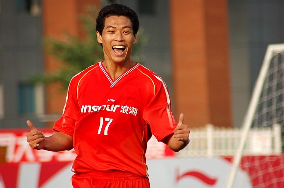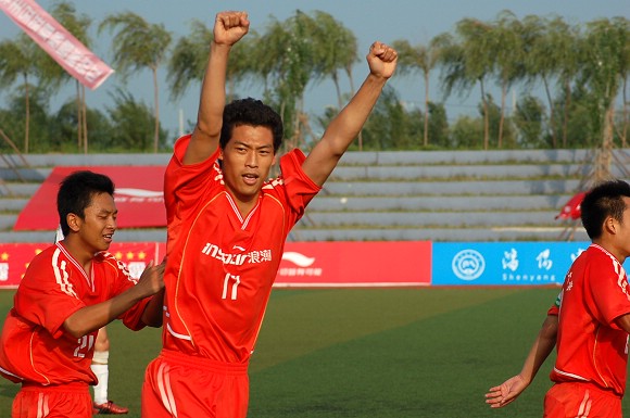 随着终场哨音的响起,本场比赛梅开二度的17号队员张树也激动万分。