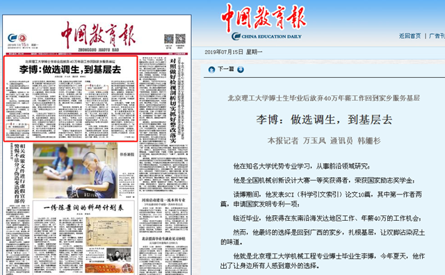 他就是北京理工大学机械工程专业博士毕业生李博,今年夏天,他作出了让身边所有人感到意外的选择。