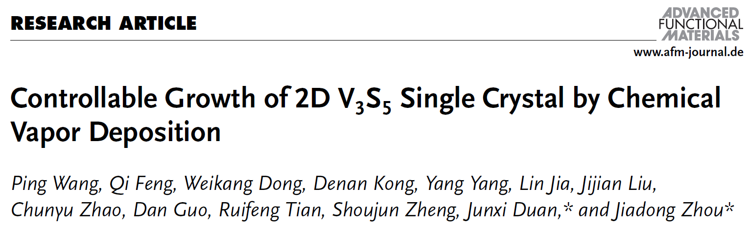 日前,北京理工大学物理学院周家东教授与段俊熙副研究员开展合作,在二维钒基自插层硫族化合物的体系中,通过化学气相沉积方法,基于二元金属前驱体共反应机制,可控合成二维自插层V3S5晶体材料,并研究其相关物性。相关研究成果发表在国际顶刊《Advanced Functional Materials》上。