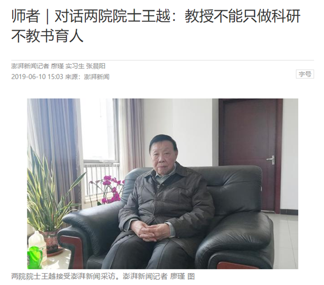 【澎湃新闻】对话两院院士王越:教授不能只做科研不教书育人
