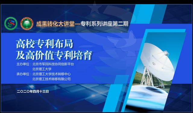 “成果转化大讲堂”——专利系列讲座由北京市军民科技协同创新平台和北京理工大学技术转移中心共同策划,结合《关于提升高等学校专利质量 促进转化运用的若干意见》等文件精神,邀请业内资深专家围绕专利“高质量创造、高效益运用、高标准保护、高水平管理”做精彩分享,助力军民科技协同创新和科技成果转移转化。