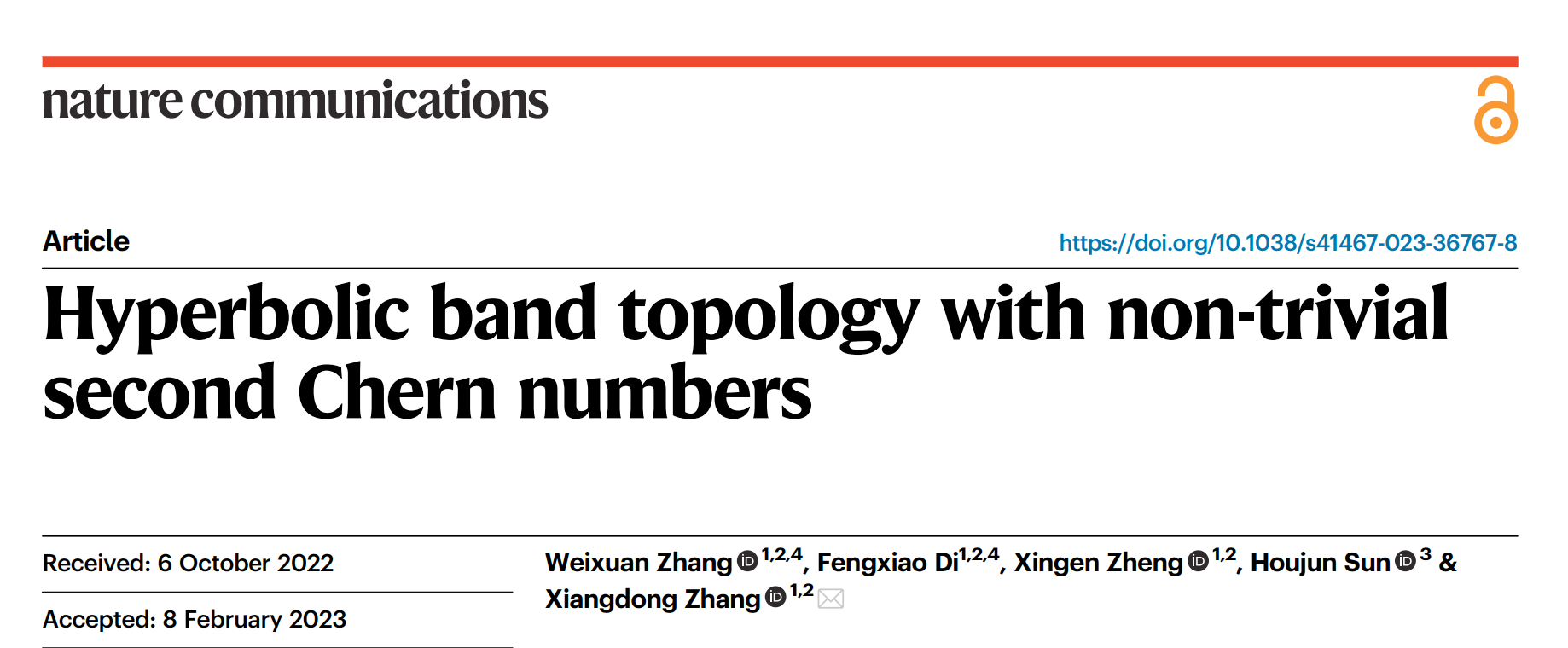 研究亮点之一:理论构建具有二阶陈数的双曲能带拓扑态