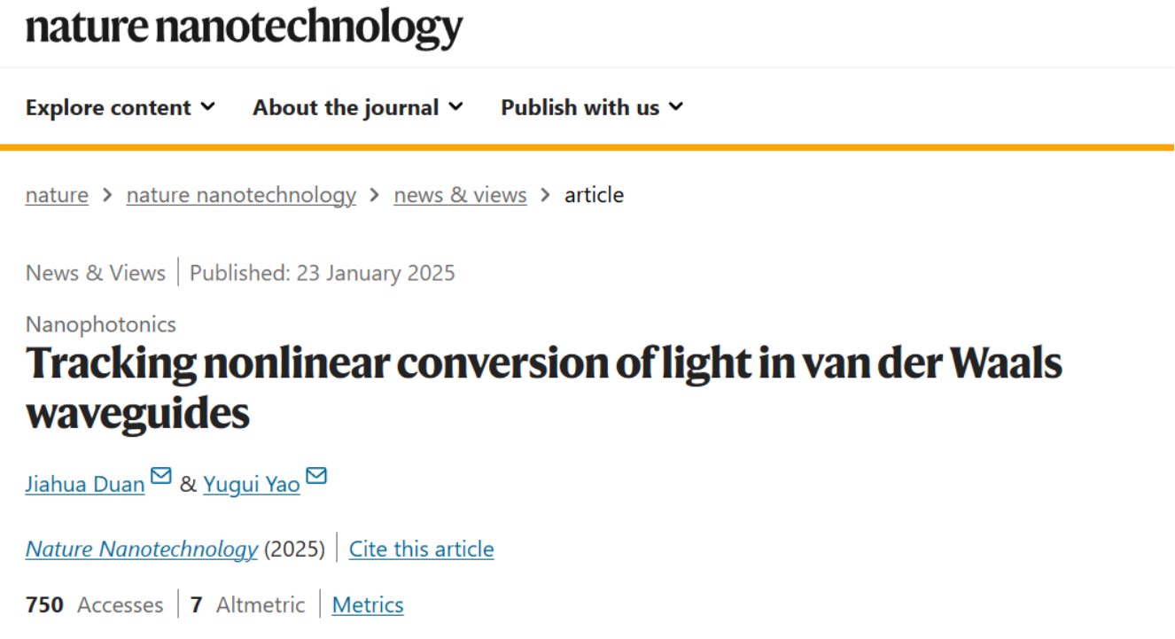 近日,Nature子刊《Nature Nanotechnology》邀请北京理工大学物理学院姚裕贵教授、段嘉华教授撰写发表评述性论文,文章题为“Tracking nonlinear conversion of light in van der Waals waveguides”,评述了哥伦比亚大学Milan Delor教授团队在Nature Nanotechnology上发表的论文[DOI: https://doi.org/10.1038/s41565-024-01849-1],介绍了远场频闪散射显微技术在非线性光学领域中的重要应用。
