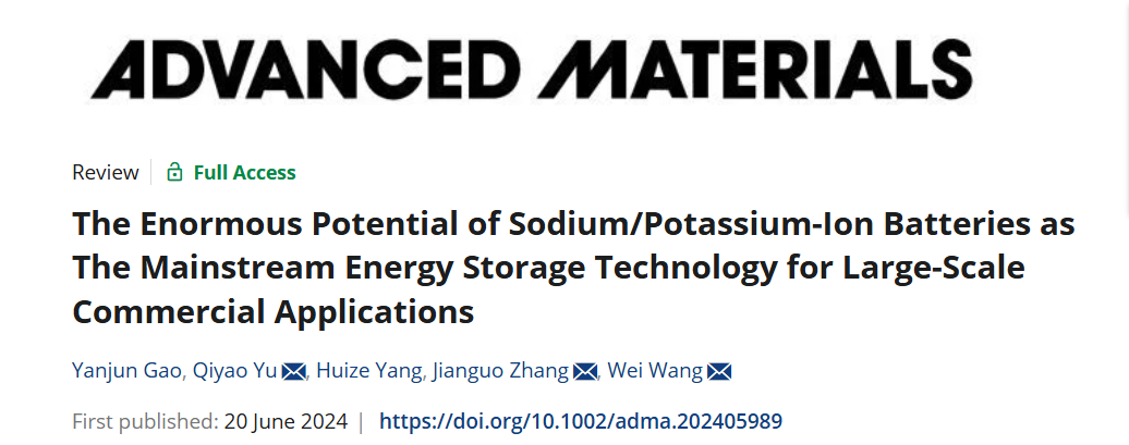 文章链接:The Enormous Potential of Sodium/Potassium-Ion Batteries as The Mainstream Energy Storage Technology for Large-Scale Commercial Applications