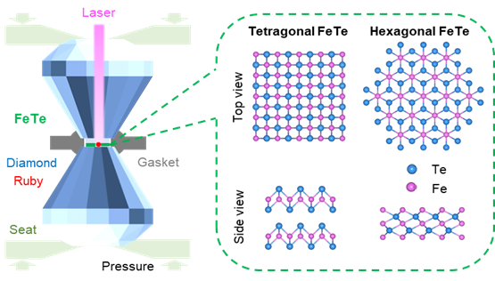 图1. 极端高压下的二维t-FeTe和h-FeTe。
