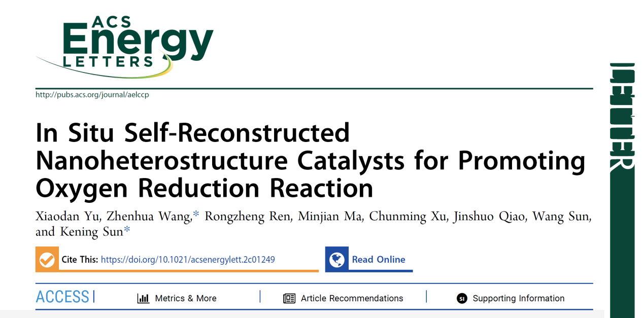 近日,北京理工大学化学与化工学院王振华教授和孙克宁教授团队在固体氧化物燃料电池氧电极材料设计方面取得新进展。相关研究成果以“In Situ Self-Reconstructed Nanoheterostructure Catalysts for Promoting Oxygen Reduction Reaction”为题发表在美国化学会能源旗舰期刊ACS Energy Letters上,并被遴选为封面文章。北京理工大学为唯一通讯单位,化学与化工学院王振华教授和孙克宁教授为共同通讯作者,化学与化工学院2021级博士研究生于晓丹为论文的第一作者。