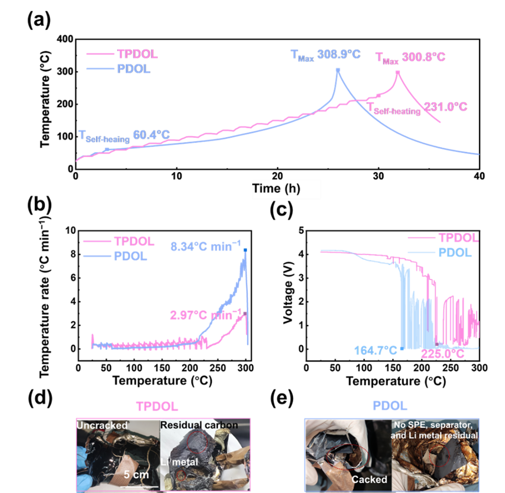 图5 含TPDOL电解质的金属锂电池在热滥用条件下的热稳定性。