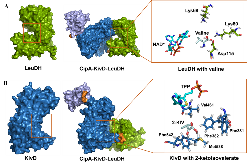 图2 CipA-KivD-LeuDH与底物的复合物模型
