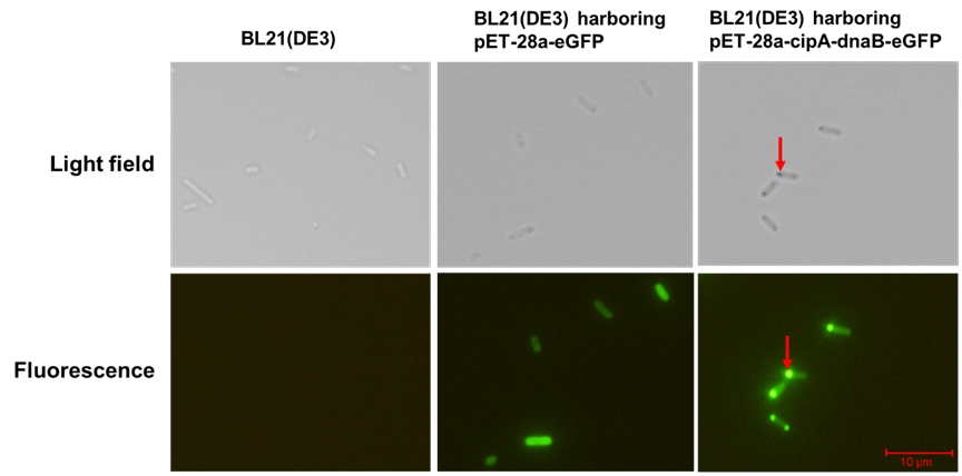 图4 CipA-DnaB在大肠杆菌中组装eGFP