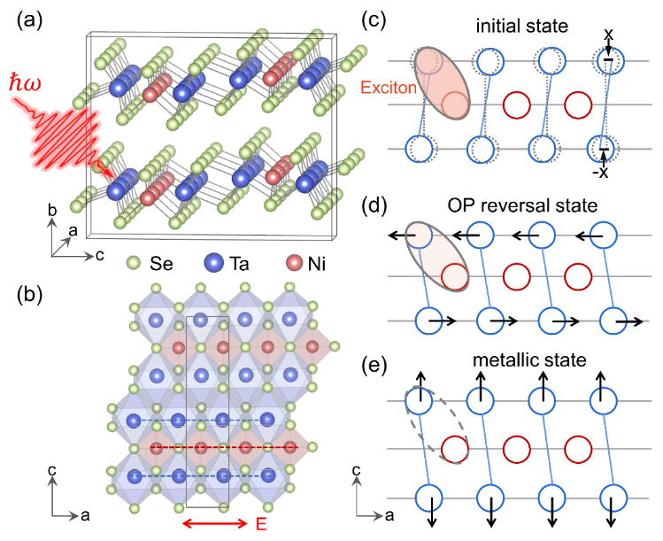 图1. Ta2NiSe5在超快光激发前后的特征原子结构。