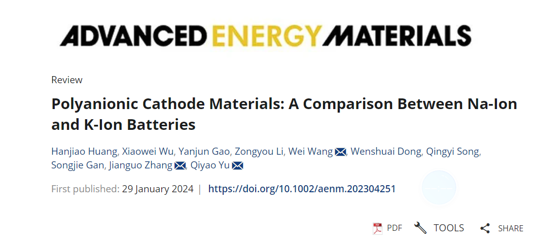 近日,北京理工大学机电学院张建国教授团队在国际顶级期刊《Advanced Energy Materials》(影响因子27.800)发表题为《Polyanionic Cathode Materials: A Comparison between Na-ion and K-ion Batteries》的综述,文章综述了聚阴离子正极材料在钠/钾离子电池中的结构和性能上的差异。本单位通讯作者为张建国教授、于琪瑶副教授,第一作者为北京理工大学机电学院2022级硕士生黄瀚蛟。