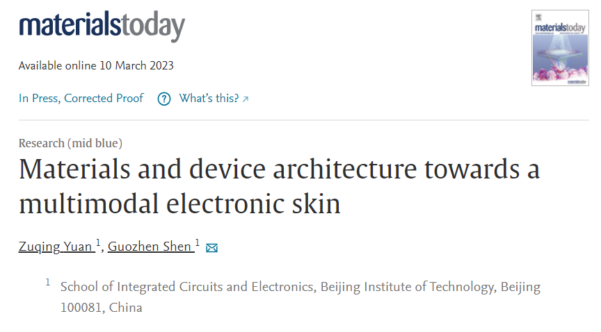 论文详情:Zuqing Yuan, Guozhen Shen*. Materials and device architecture towards a multimodal electronic skin, Materials Today,2023, DOI: 10.1016/j.mattod.2023.02.023