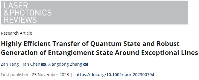 另一方面,量子态的高效转移和纠缠态的鲁棒产生对于量子信息的应用至关重要。然而由于量子退相干和无序性的原因,目前很难实现。考虑到已经证明环绕奇异点可以实现手性拓扑模式传输,那么能否借助非厄米奇异点和奇异线的拓扑特性,实现高效量子态转移和鲁棒纠缠态产生?