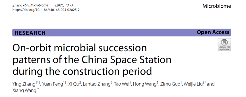 近日,北京理工大学张莹教授在微生物组学国际顶级期刊《MICROBIOME》(平均5年影响因子:17.9)上发表了题名为“On‑orbit microbial succession patterns of the China Space Station during the construction period”的学术研究论文。该论文以北京理工大学生命学院作为第一通讯单位,中国空间技术研究院北京飞行器总体设计部为第二通讯单位,张莹教授与其硕士研究生彭园作为共同第一作者,张莹教授和空间站系统总指挥王翔研究员为共同通讯作者。