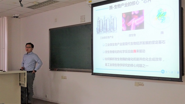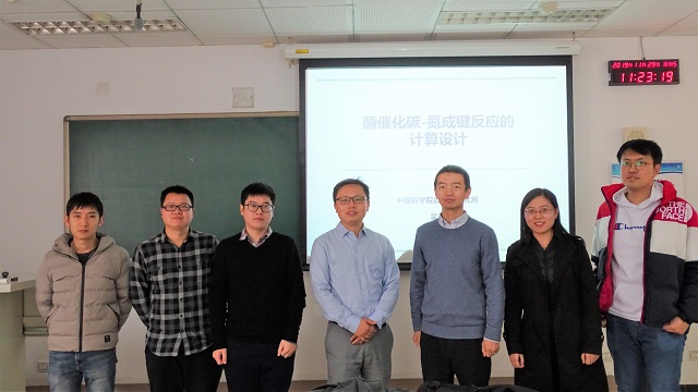 冯旭东首先为大家介绍了吴边研究员的工作经历与成就;吴边研究员介绍了他在工业酶的计算机设计方面的研究工作。