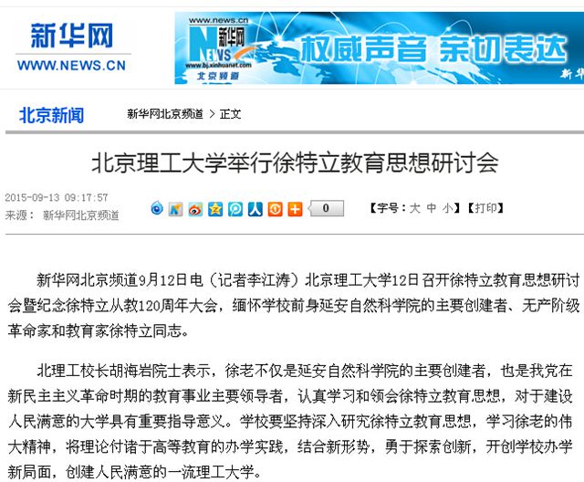 原文标题:北理工开研讨会缅怀徐特立老校长