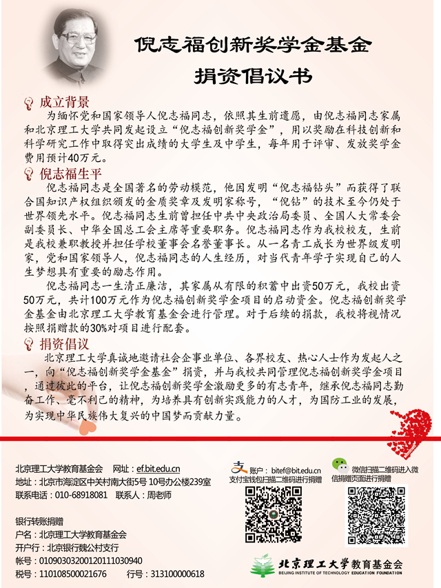 获取更多信息,请关注官方微信平台“北京理工大学教育基金会”(BITEF2010)。