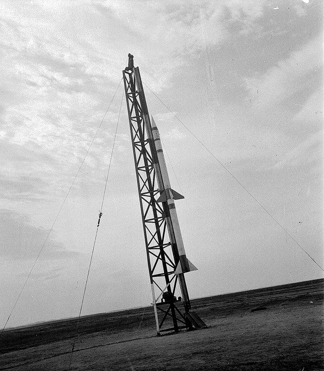 “东方-1号”探空火箭正在进行上架安装