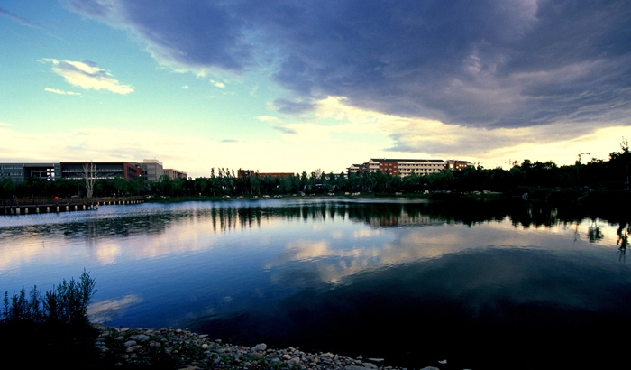 值得一提的是,从2009年10月至2010年5月,一项特别的工程整体提升了良乡校区的校园风貌——校园北湖工程,从原来的一处天然积水的洼地,到风景如画的国家优质园林工程,良乡北湖已经成为校区最耀眼的一颗明珠,也成为整个高教园区的亮点。
